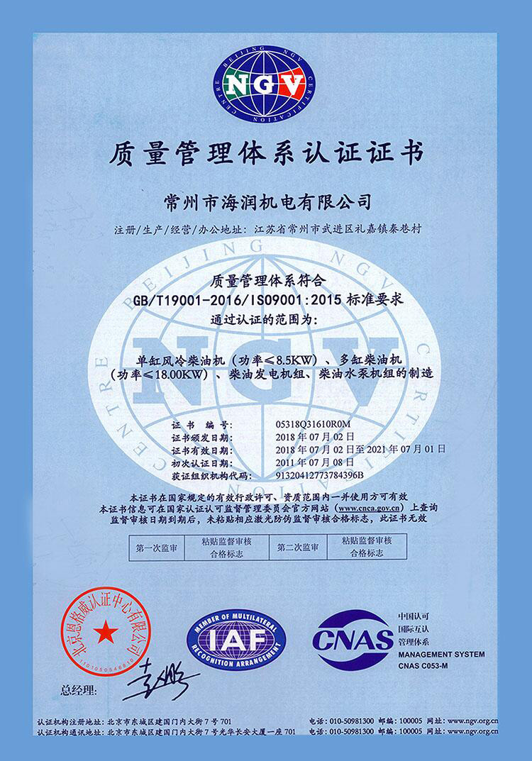 公司主營業(yè)務包括:水冷柴油發(fā)電機組、風冷柴油發(fā)電機組、風冷柴油機、汽油機、汽油機組、水泵機組、小型農(nóng)用機械和道路機械設備。公司研發(fā)了具有自主產(chǎn)權(quán)的198FA風冷柴油機已獲得發(fā)明和實用證書,公司生產(chǎn)的超靜音柴油發(fā)電機組獲得發(fā)明證書。此外,公司還通過了ISO9001-2015質(zhì)量管理體系認證,獲得歐盟的CE安全認證,產(chǎn)品暢銷國內(nèi)和國際市場。